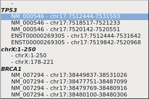 When the input doesn't result in a unique genomic location (For example: gene has multiple transcripts), a popup is displayed which alows the user to select an unique location.